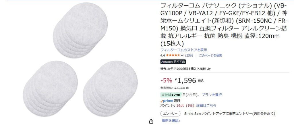 7. Amazonで「品番+フィルター」「換気口 フィルター」で検索